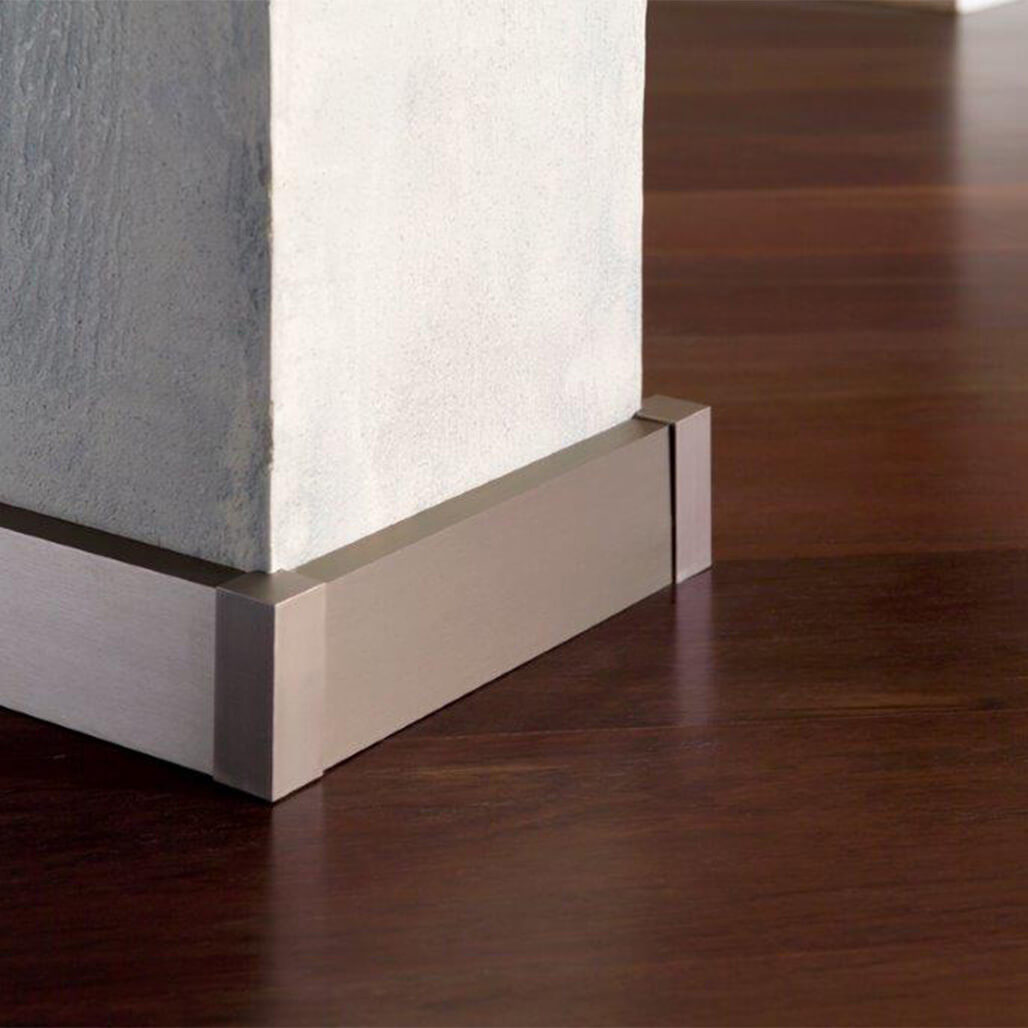 Aluminium skirting board with a height of 60 mm and a thickness of 15 mm. incl. 7 wall brackets per length (consisting of glass fiber reinforced plastic). Available in 2 colours. Other anodized shades and powder coating (RAL) on request. Accessories: end pieces (right/left), connecting piece, 90° outer/inner corners, 135° outer/inner corners (not in stainless steel look fg).