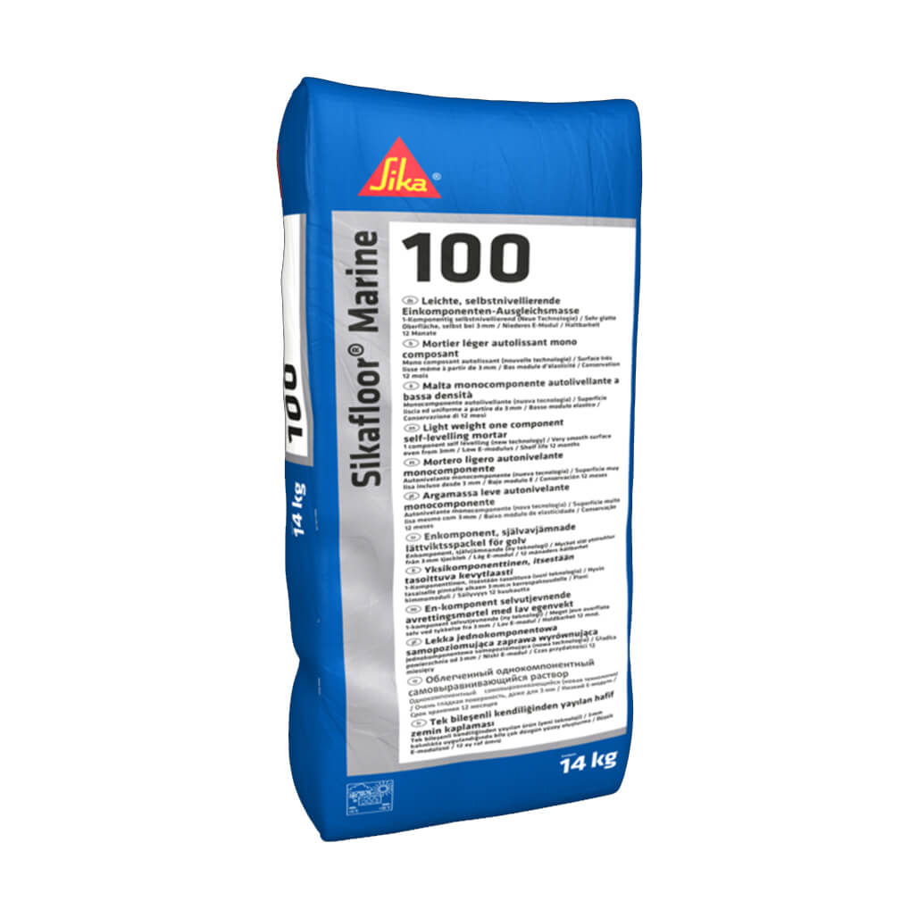 Sikafloor Marine-100  is a 1-component lightweight self-levelling mortar based on polymer modified cement. Sikafloor Marine-100 is tested according to FTP Code system and approved according to the IMO Marine Equipment Directives. Product benefits: good leveling properties in thin layers, can be pumped, and easily applicable. Per 14 kg bag at layer thickness 1 mm/15 m2. See product data sheet for more information.