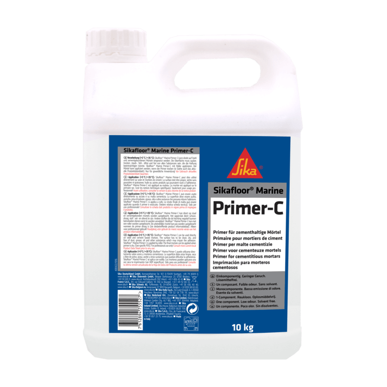 Sikafloor Marine Primer C  is a water-based white primer, which forms a thin layer when the water is evaporated. This layer acts as a link between the two substrates. Sikafloor Marine Primer C  is specifically formulated for the treatment of bond faces prior to the application of cementitious Sikafloor Marine products. Consumptin on steel: 75 ml/m2. Consumptin on mortar: 150 - 300 ml/m2. See product data sheet for more information.