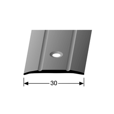 Transition profile made of Aluminium with a width of 30 mm. Drilled countersunk in the center. With decorative grooves. Assembly: screwing with Torx screws 3.0 mm. Screws 3.0. Other colors and powder coating in RAL colors possible on request. Custom-made cuts possible on request.