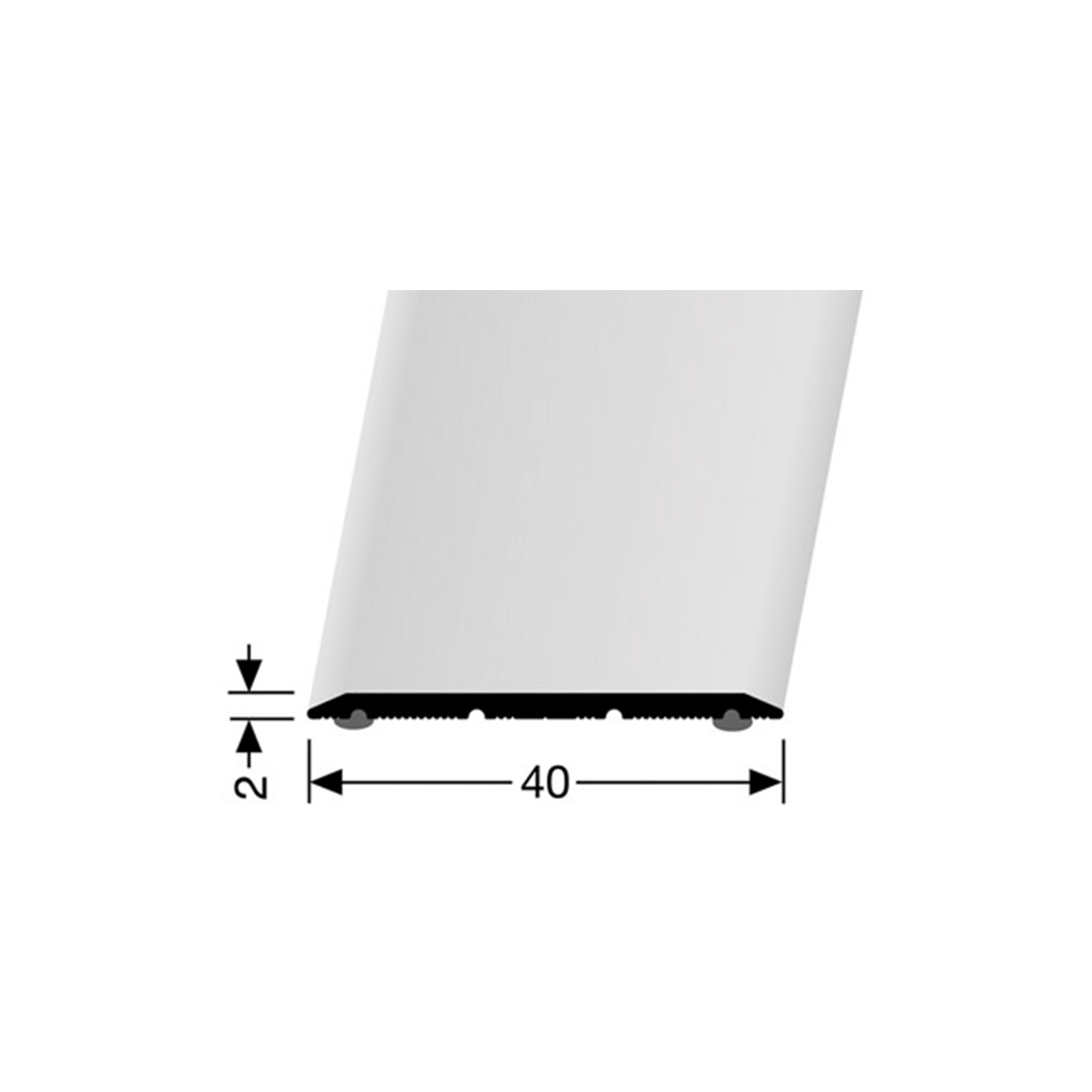 Transition profile made of Aluminium with a width of 40 mm. Self-adhesive. Installation: The subsurface must be free of dust and grease, level, firm, dry and load-bearing. Other colors and powder coating in RAL colors possible on request. Also possible with wood decor on request. Custom-made cuts possible on request.