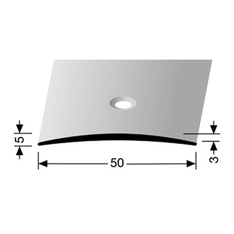 Transition profile made of Aluminium with a width of 50 mm. Drilled countersunk in the center. Assembly: screwing with Torx screws 3.5 mm. Screws 3.5. Other colors and powder coating in RAL colors possible on request. Custom-made cuts possible on request.