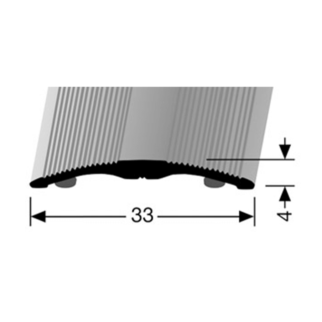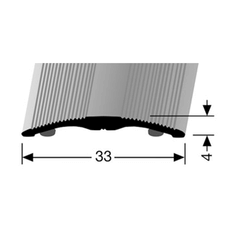 Transition profile made of Aluminium with a width of 33 mm. Self-adhesive. With decorative grooves. Installation: The surface must be free of dust and grease, level, hard, dry and stable. Other colors and powder coating in RAL colors available on request. Custom-made cuts possible on request.